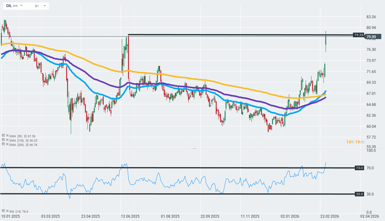 The attack on Ras Tanura is part of a wider wave of attacks on energy infrastructure and military targets throughout the Gulf region following weekend air strikes by the US and Israel on Iran and Tehran’s massive retaliation against bases and cities in the UAE, Qatar, Bahrain, Oman and Saudi Arabia. At the same time, tanker traffic through the Strait of Hormuz, through which more than 20% of global maritime oil trade passes, has been virtually paralysed, which has already pushed Brent and WTI prices up by around 9-10% to around USD 80 per barrel. Against this backdrop, OPEC+’s decision to increase production by 206,000 barrels per day from April is, for the time being, too small to offset the growing supply risk.