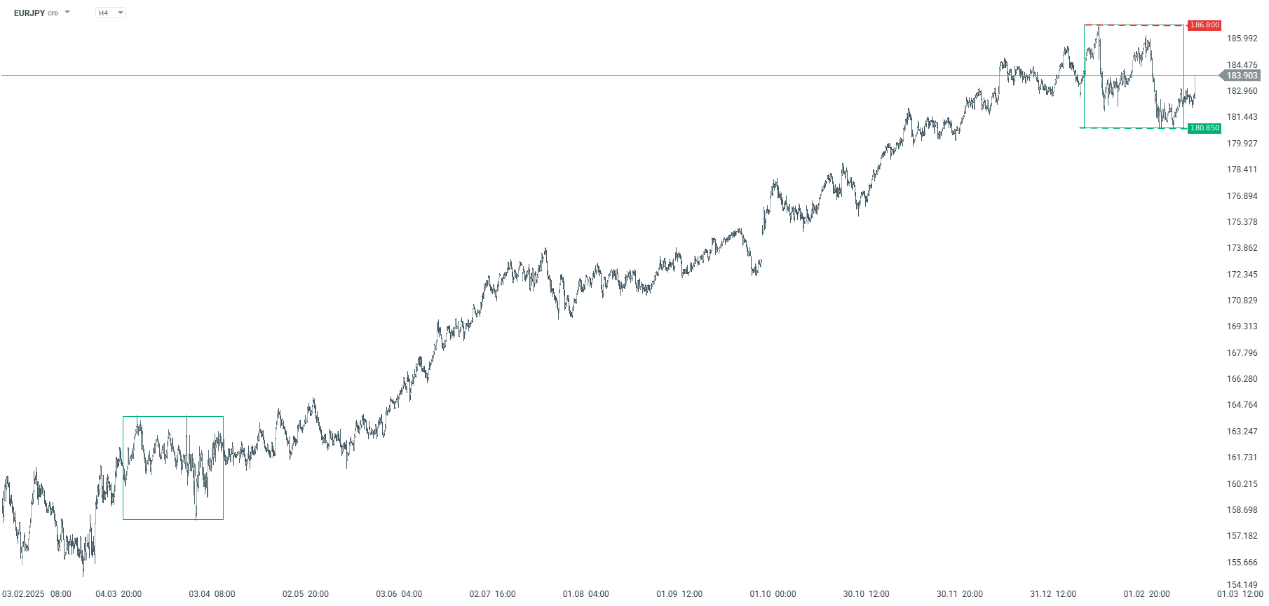 EURJPY – H4 interval. Source: xStation5